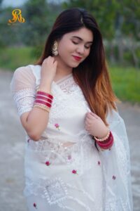 প্রিমিয়াম সাদা শাড়ী এমবোটারি এন্ড সফট সেমি-সিল্ক শাড়ি ব্লাউজ পিছ ফ্রি – (RBT-25)