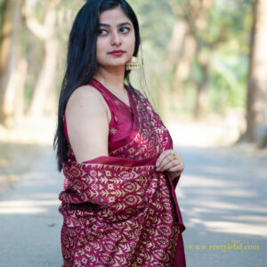 প্রিমিয়াম জাপানি সিল্ক শাড়ি + ব্লাউজ পিস Maroon color (RBM-23)